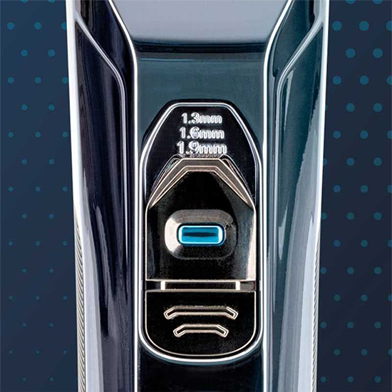 Aceasta masina de tuns redefineste experienta de frizerie cu tehnologie avansata si performanta optima. Lama sa ceramica alba, finisata cu nitrura de titan albastru, ofera precizie extrema si durabilitate imbunatatita. Cu o rezistenta superioara la coroziune si o ascutire de lunga durata, aceasta lama este proiectata pentru a oferi rezultate consistente si precise de fiecare data. Display-ul LED, inscriptionat cu Gamma+ in 3 culori diferite, indica nivelul bateriei pentru o operare fara probleme.