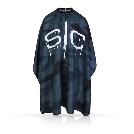 Pelerina de frizerie/coafor cu model camuflaj in nuante de negru si gri (si logo STYLECRAFT) aduce un aer sofisticat si modern in salon. Designul sau inspirat de pattern-urile militare ofera un look contemporan, perfect pentru stilistii care doresc sa combine stilul cu functionalitatea.