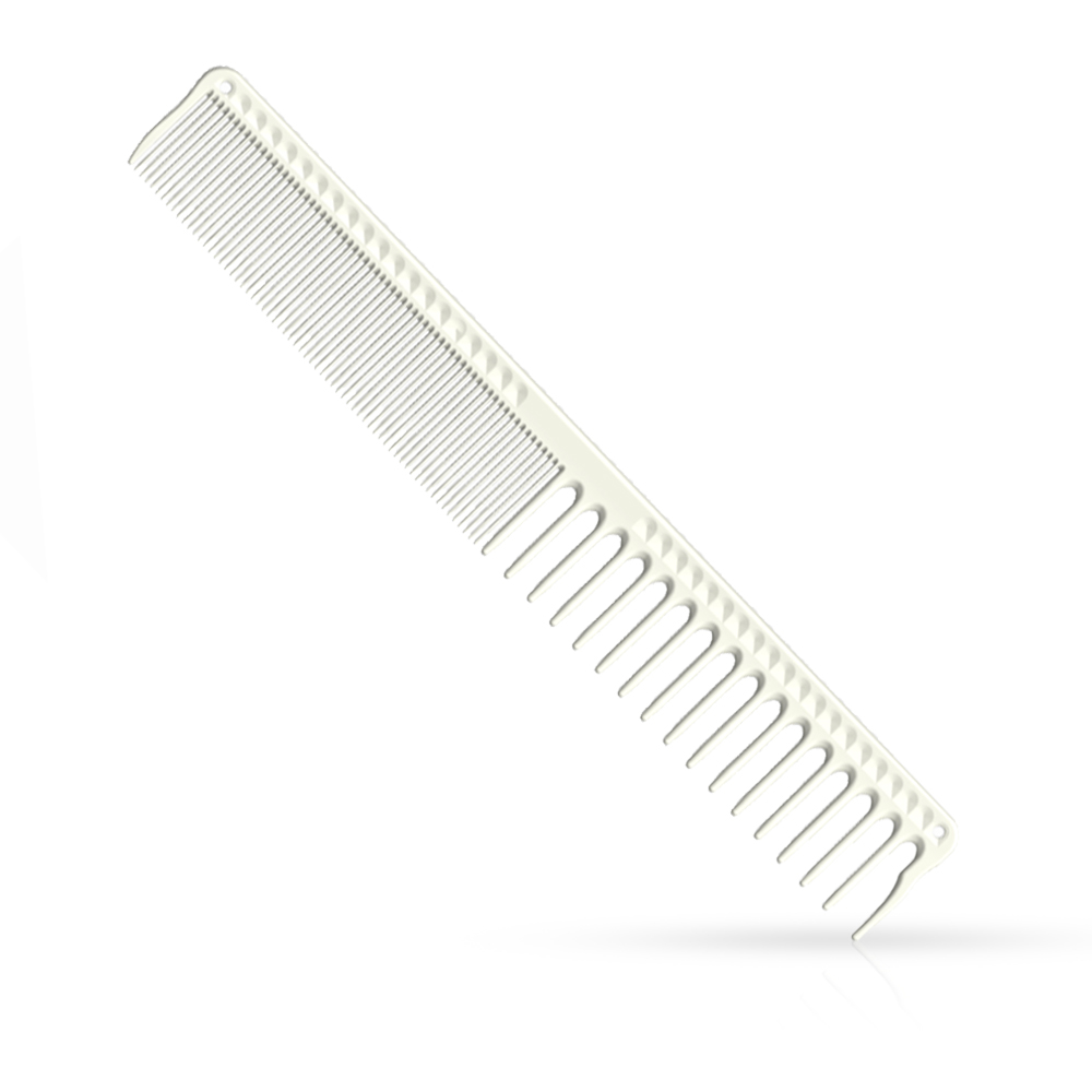 Pieptanul J302 este unul din produsele de top ale brand-ului remarcate si foarte vandute pe piata barbering-ului. Modelul in sine este conceput special pentru a tunde si a perfectiona atat lateralele cat si partea de top.Ajuta foarte mult la sectionarea parului creand liniile perfecte.Format dintr un material de plastic foarte durabil si rezistent la caldura,beneficiand de o flexibilitate foarte mare,are o parte cu dinti mai rari pentru laterale iar o parte mai fina pentru zona de top.Avand o suprafata neteda cu dinti fini,ofera stilistului un control pentru o manevrare cat mai facila si utila pentru o atentie sporita la detalii.