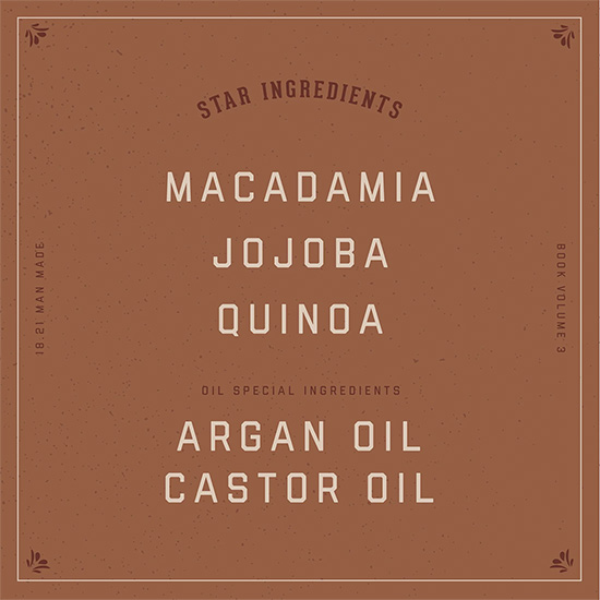 18.21 Manmade este un brand celebru din USA, simbol al masculinitatii Prin produsele de ingrijire persoanala de top incurajeaza barbatii sa se simta increzatori si sa realizeze tot ceea ce isi propun. Ambalajele sunt inspirate din epoca prohibitiei cand se ascundea bautura sau alte obiectele de valoare in biblioteci. Gama este diversificata, de la sampoane multi use, la uleiuri, parfumuri si seturi potrivite sa fie un cadou de tinut minte pentru oricare barbat.