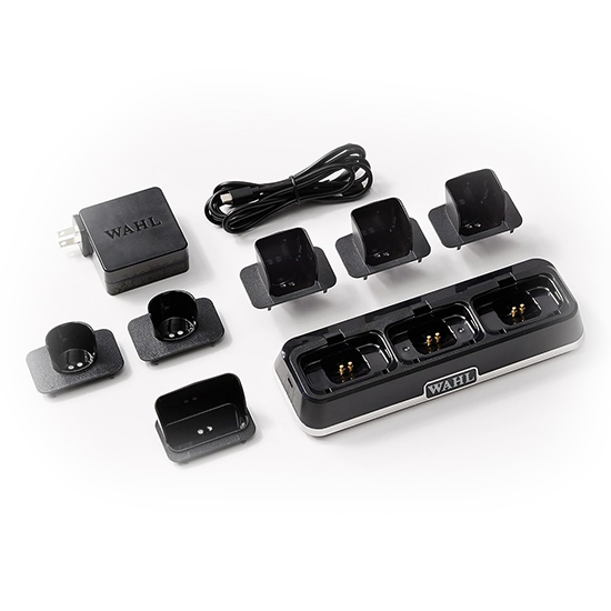 Incarcati orice combinatie de trei masini de tuns, aparate de tuns si aparate de ras Wahl Professional fara fir de 5 V in timpul necesar pentru a incarca o singura unealta. Sase insertii interschimbabile va permit sa personalizati Power Station in functie de uneltele de care aveti nevoie sa le reincarcati. Incarcati un telefon, un dispozitiv mobil sau o tableta direct de la portul USB-C al statiei de incarcare.